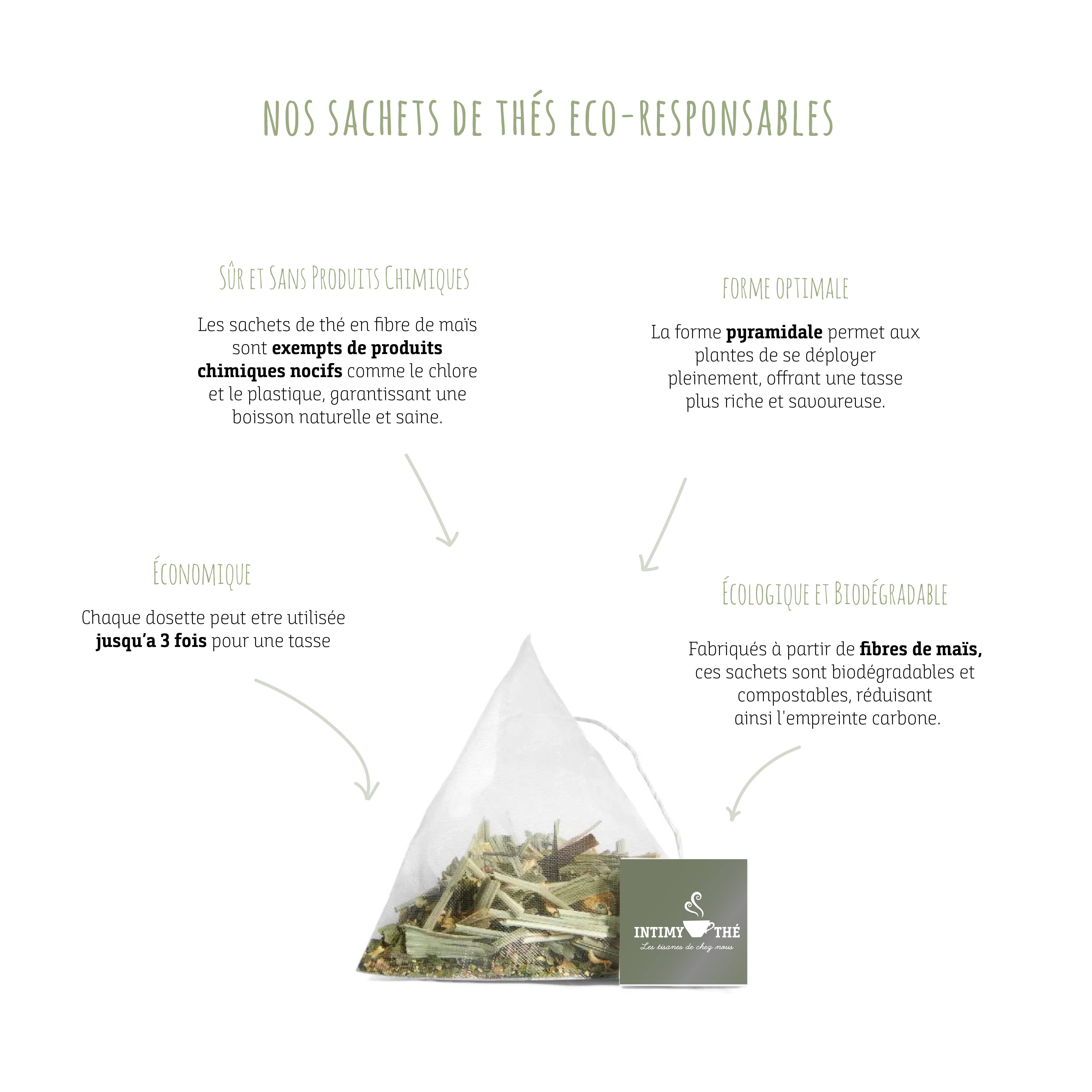 Chez Intimythe, nous croyons qu’il est possible de prendre soin de soi tout en prenant soin de la planète. Chaque infusion que nous produisons est le fruit d’un engagement fort envers l’environnement et les générations futures.